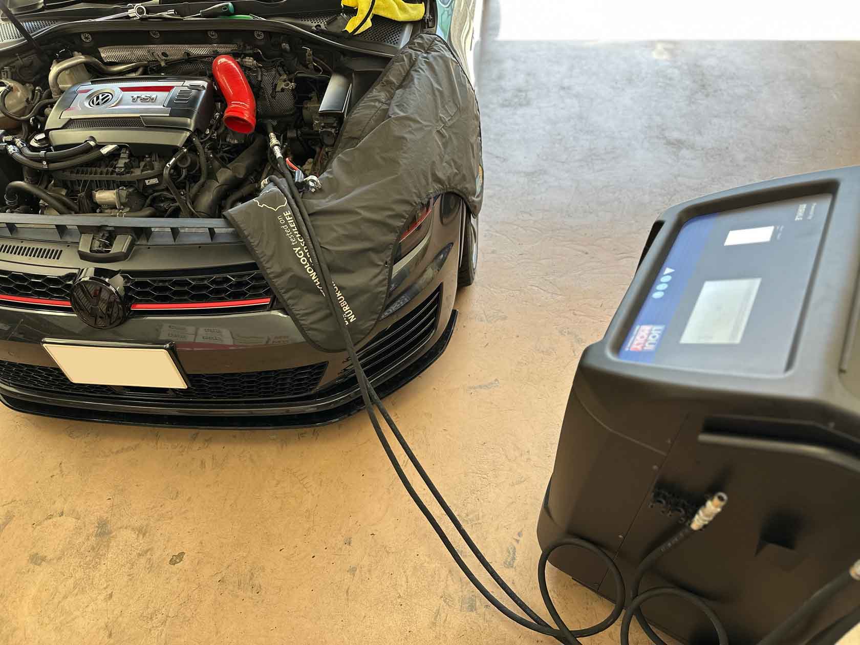 車種別アタッチメントで車両とホースを接続しますので、下抜きでは不可能であった全量により近いDSGオイルの交換ができるようになります!