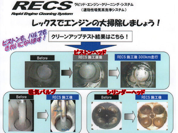 今までのガソリンに添加するタイプのこの手のケミカルは「なんとな~く効いたかな?」程度のものが多くありましたが、RECSは違います!確実に効果を体感いただいております。